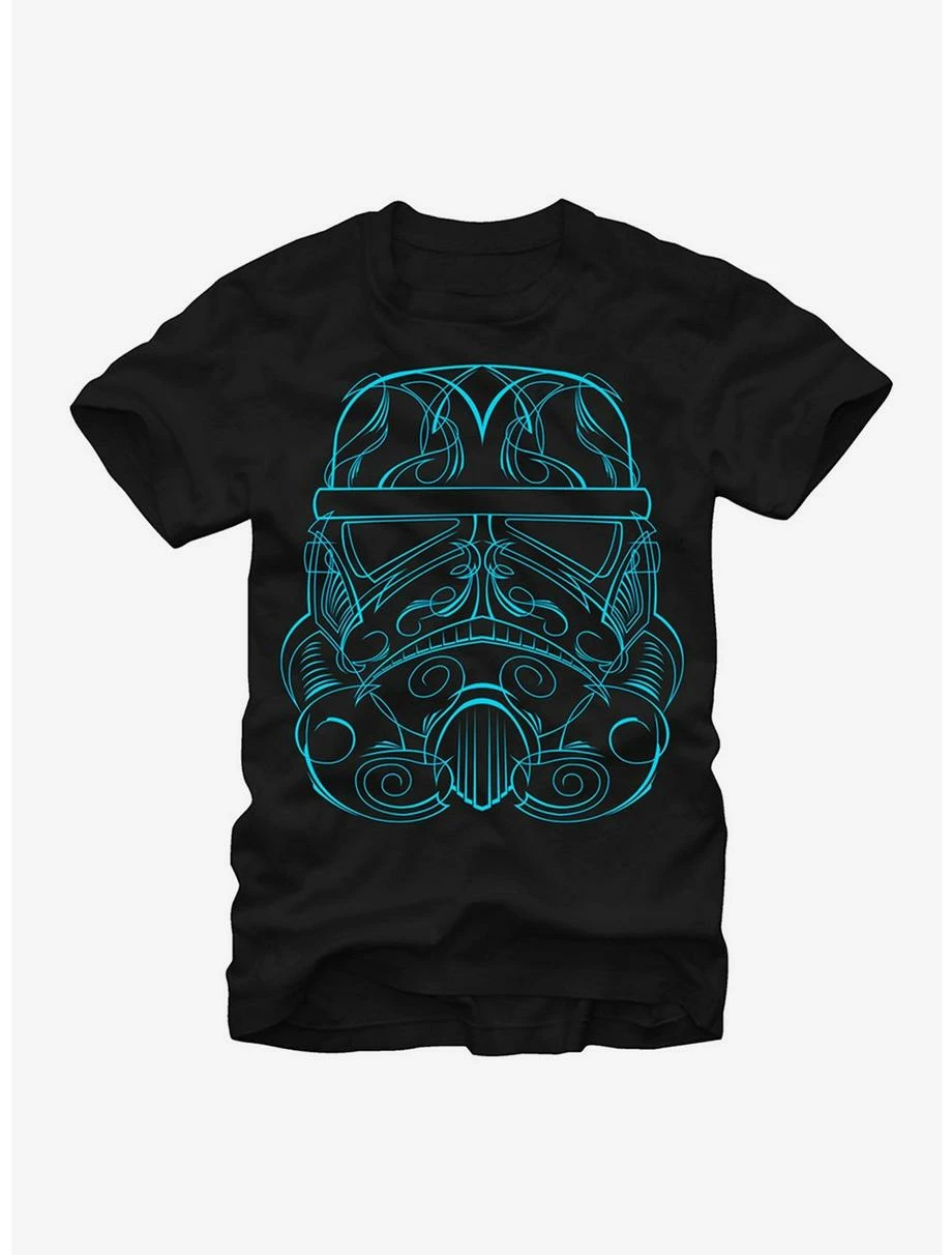 Use the power of the Star Wars Stormtrooper Sketch Black T-Shirt to align yourself with the Galactic Empire. An artistic representation of a stormtrooper helmet is printed on a black graphic tee for Star Wars fans who know the power of the dark side. 100% Cotton.